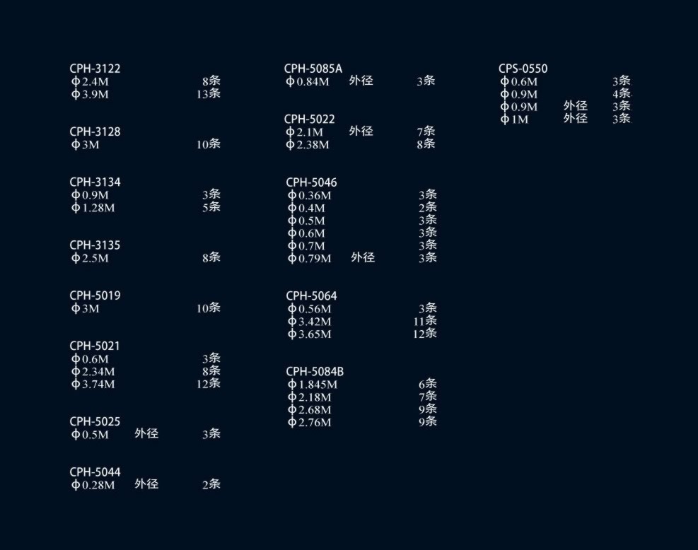 羊城牌现有弧线目录(单位:m)